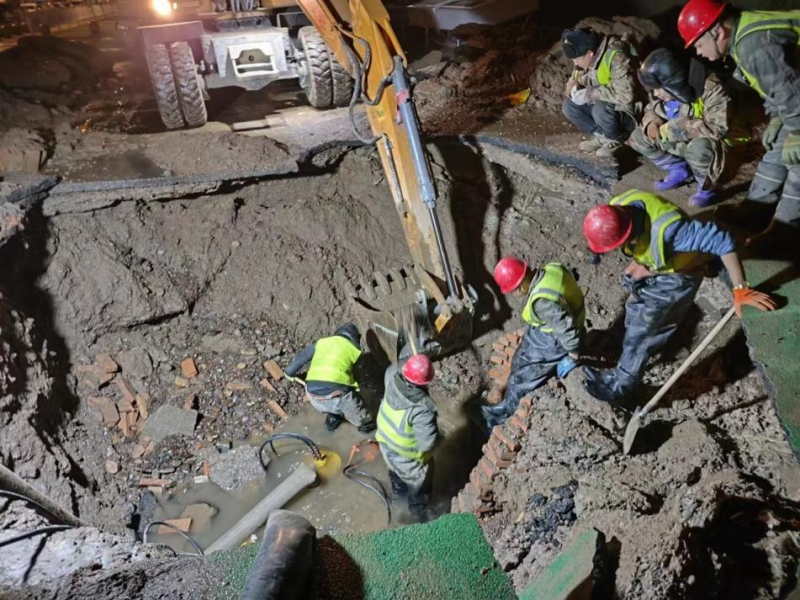 為保證居民用水,我公司維修人員連夜不間斷進(jìn)行搶修,于2月29日上午10點優(yōu)先完成居民通水,當(dāng)日晚7點全部維修完畢進(jìn)行回填。