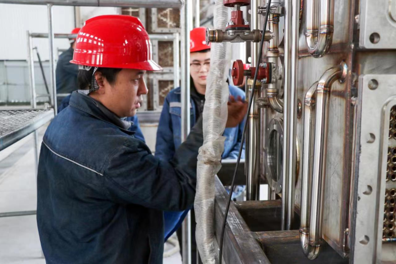 富龍供熱技術(shù)公司總經(jīng)理方豪在車間試驗(yàn)新技術(shù)