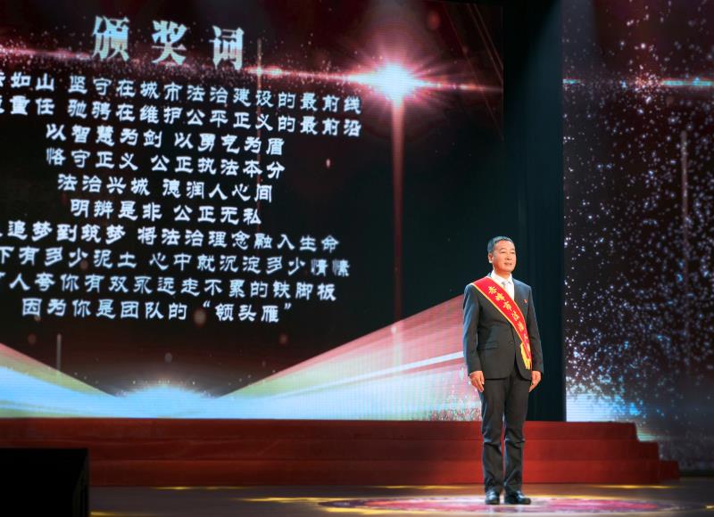 “執(zhí)法如山、堅(jiān)守在城市法治建設(shè)的最前沿,肩負(fù)重任、馳騁在維護(hù)公平正義的最前沿,以智慧為劍、以勇氣為盾,恪守正義、公正執(zhí)法本分……”典禮頒獎(jiǎng)環(huán)節(jié)給予孫廣通高度評(píng)價(jià)。孫廣通表示,將認(rèn)真貫徹落實(shí)黨的二十大精神,始終堅(jiān)持以習(xí)近平法治思想為指導(dǎo),堅(jiān)定不移走中國(guó)特色社會(huì)主義法治道路,以榮譽(yù)為起點(diǎn),堅(jiān)定法治信仰,立足崗位服務(wù)中心大局,以實(shí)際行動(dòng)和更優(yōu)異的成績(jī),為法治赤峰建設(shè)貢獻(xiàn)更大力量。